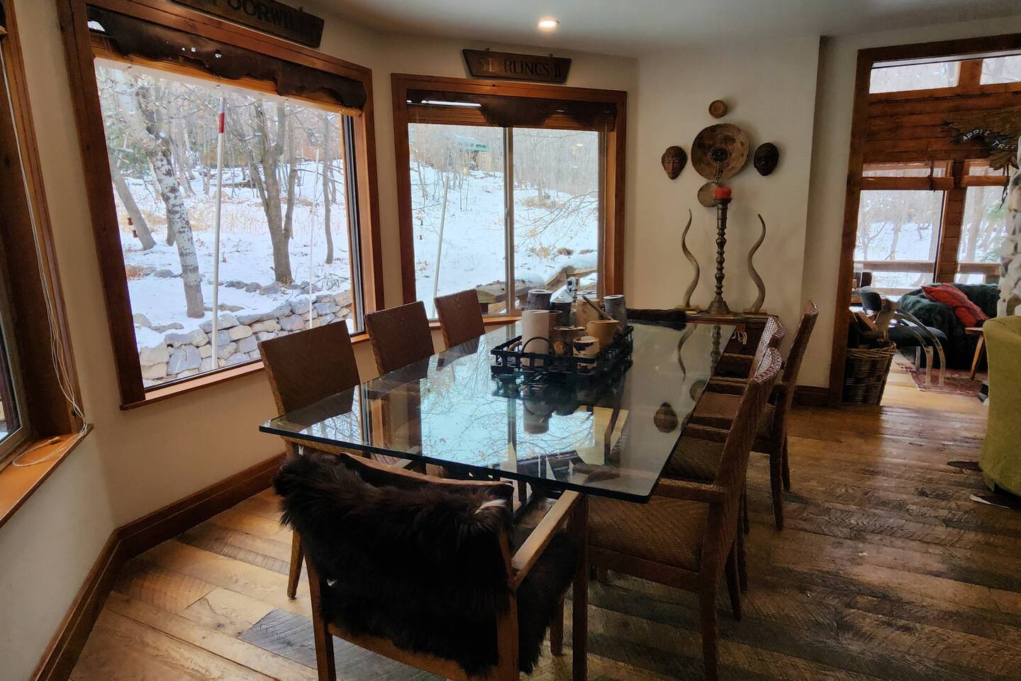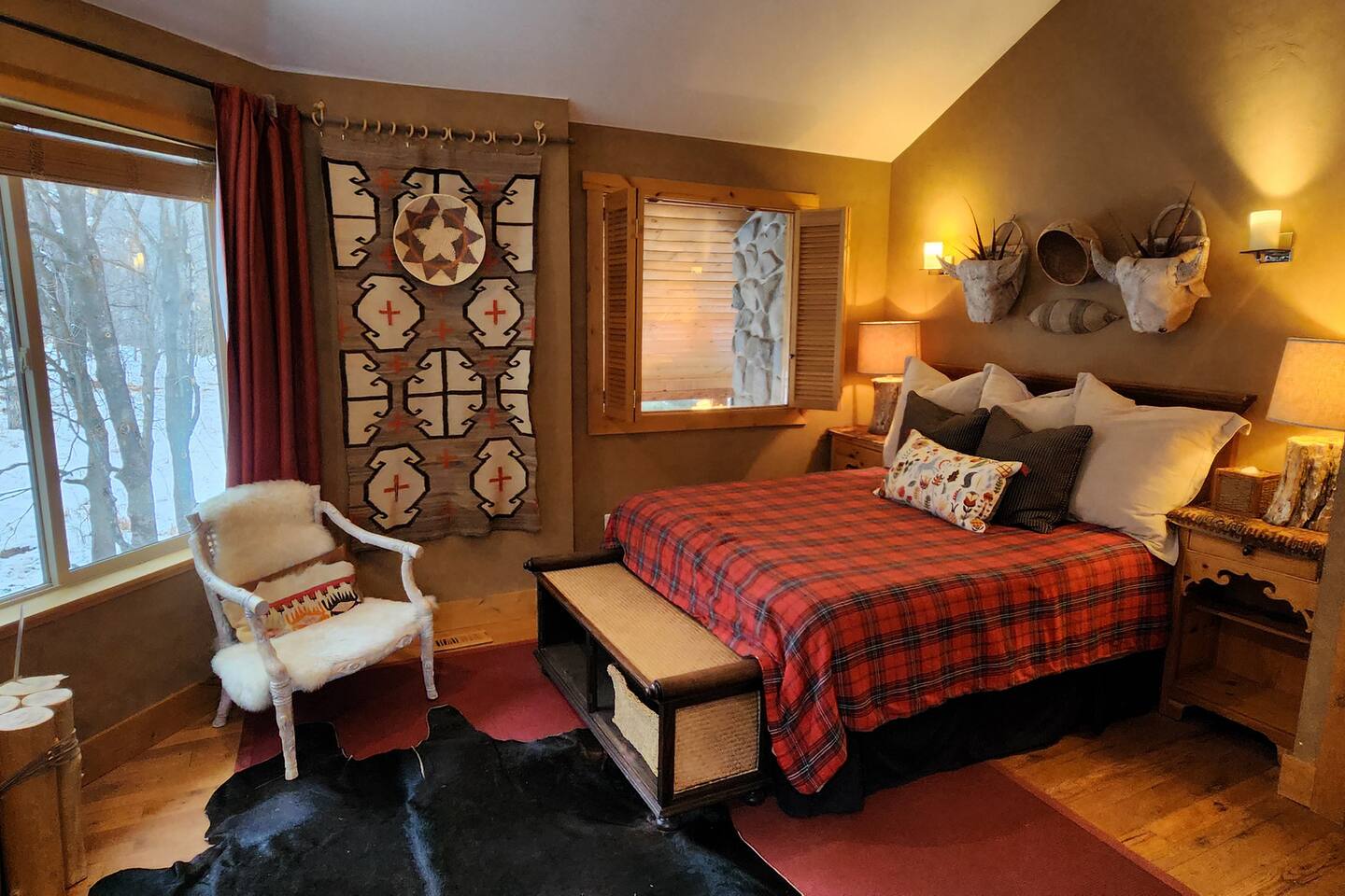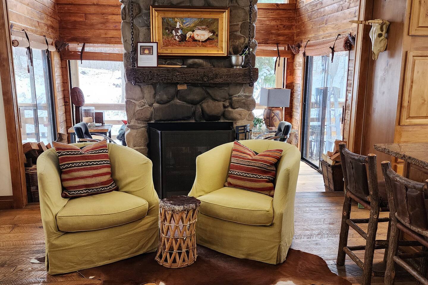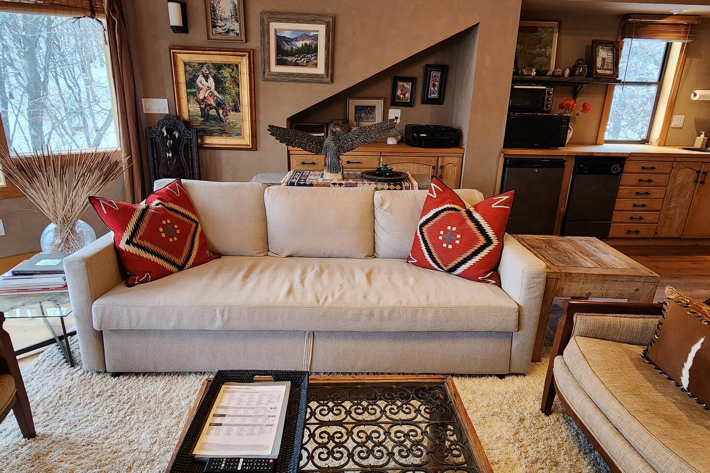 Relax in front of the soothing flames of a real wood fireplace. This beautiful, Sundance mountain contemporary home is the perfect get-away for groups of couples or for family gatherings. Besides the four bedrooms, there are also four separate gathering areas allowing individuals to socialize comfortably. Out 300 Mbs wifi will enable you all to stream your favorite shows on our TV's enabled with ROKU streaming and YouTubeTV cable tv. Something for everyone with the quiet outdoor solitude on the decks and Wii game systems for the youngsters and the puzzles, boardgames and toys for even younger ones. The home is professionally decorated with original art, native American and vintage cowboy decor, and comfortable mountain contemporary furnishings. You will have the home all to yourself.