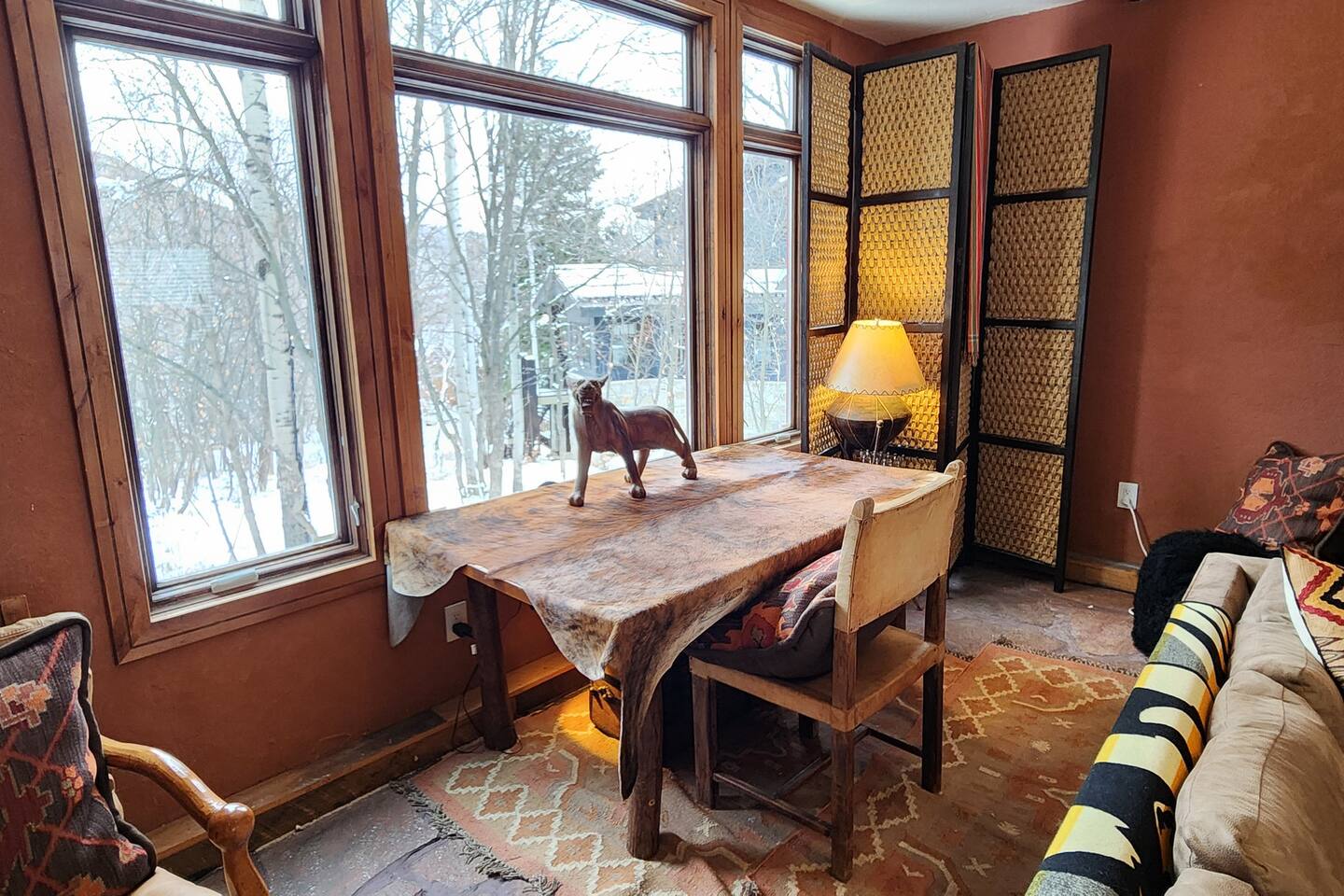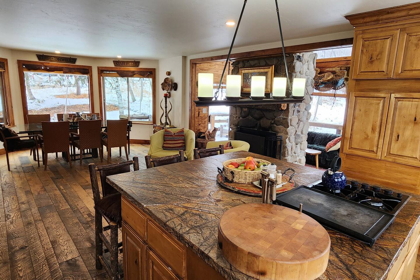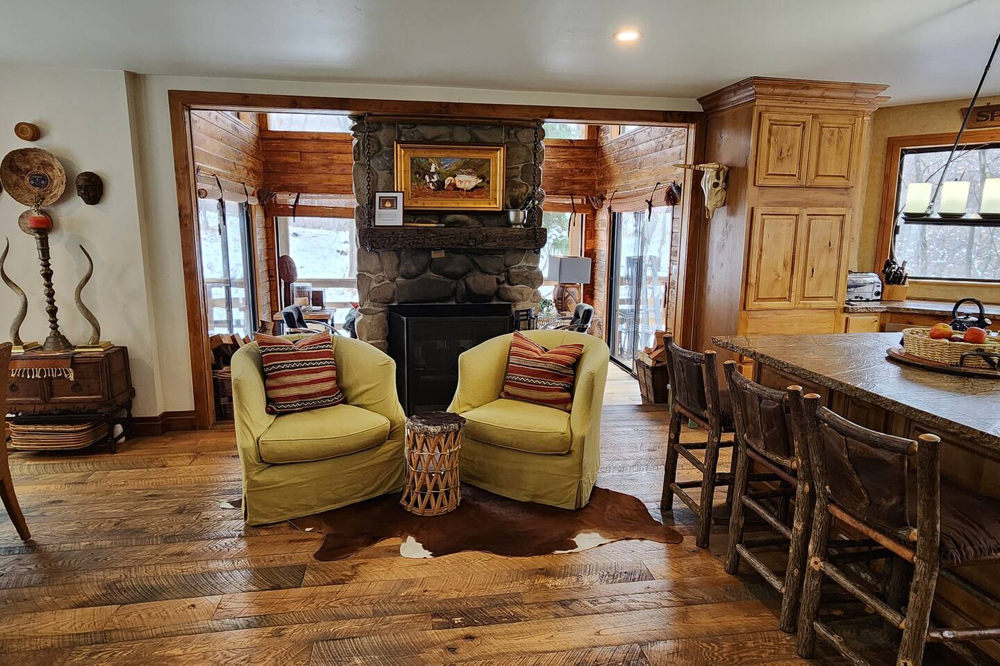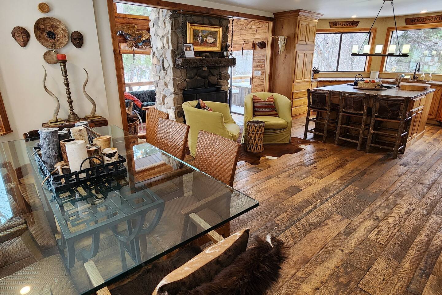 Relax in front of the soothing flames of a real wood fireplace. This beautiful, Sundance mountain contemporary home is the perfect get-away for groups of couples or for family gatherings. Besides the four bedrooms, there are also four separate gathering areas allowing individuals to socialize comfortably. Out 300 Mbs wifi will enable you all to stream your favorite shows on our TV's enabled with ROKU streaming and YouTubeTV cable tv. Something for everyone with the quiet outdoor solitude on the decks and Wii game systems for the youngsters and the puzzles, boardgames and toys for even younger ones. The home is professionally decorated with original art, native American and vintage cowboy decor, and comfortable mountain contemporary furnishings. You will have the home all to yourself.