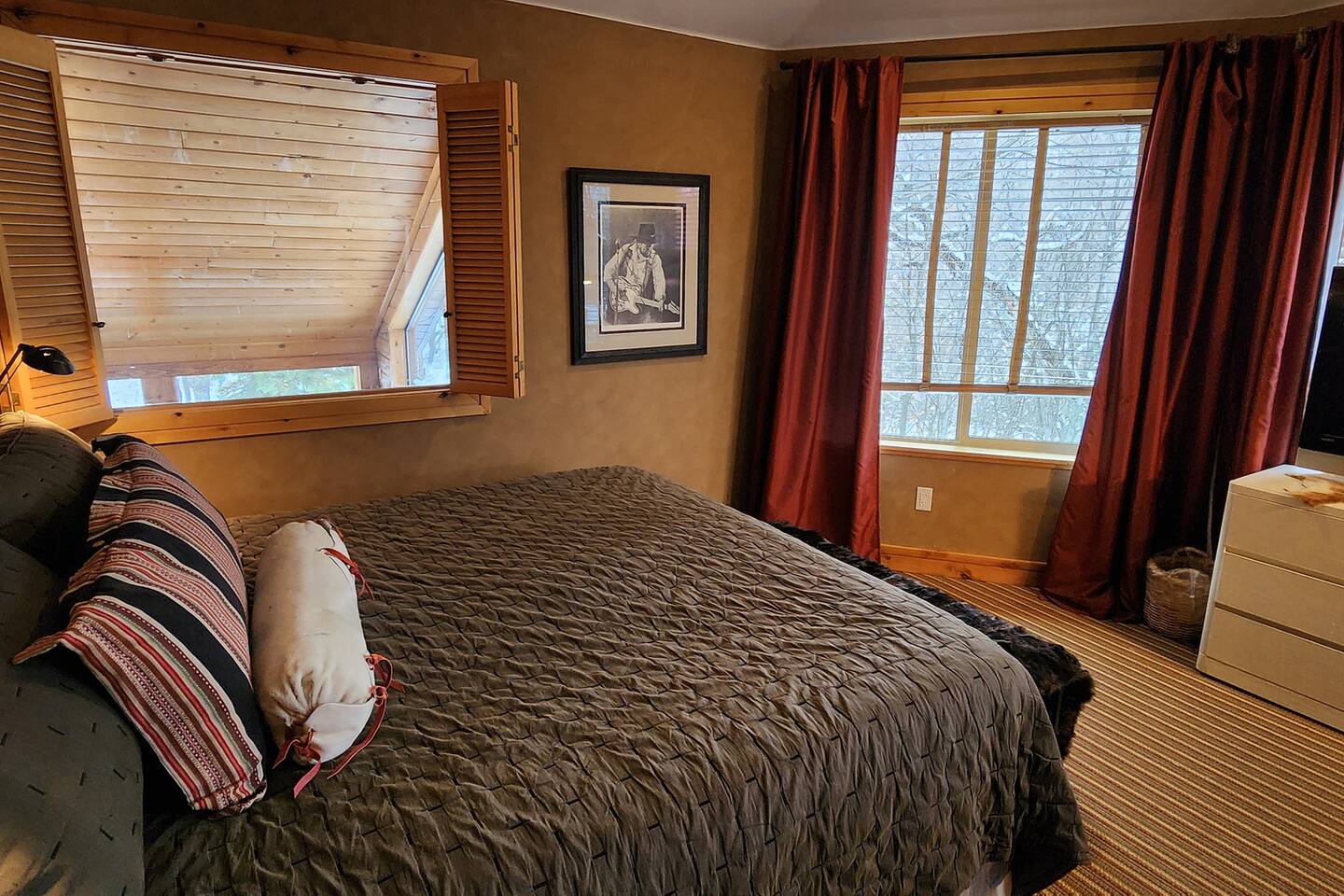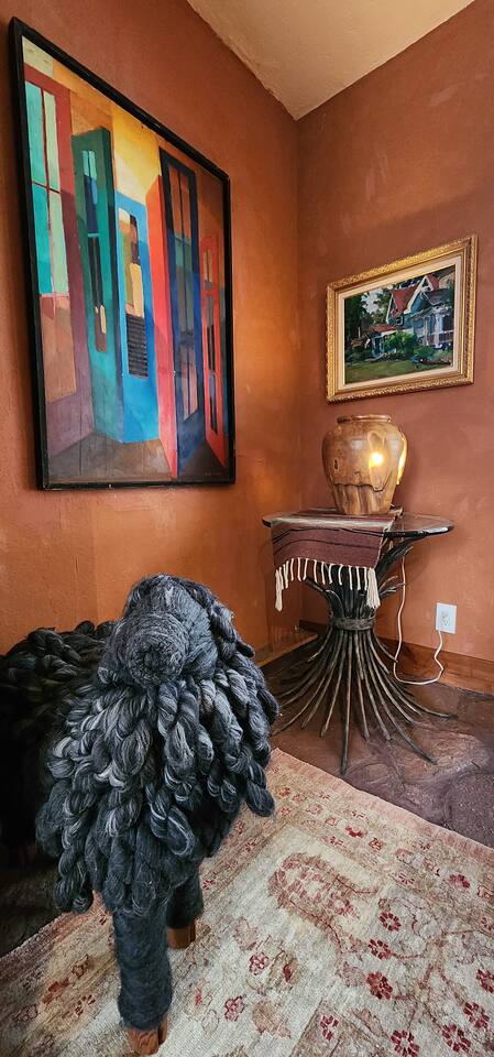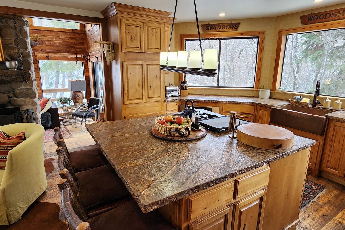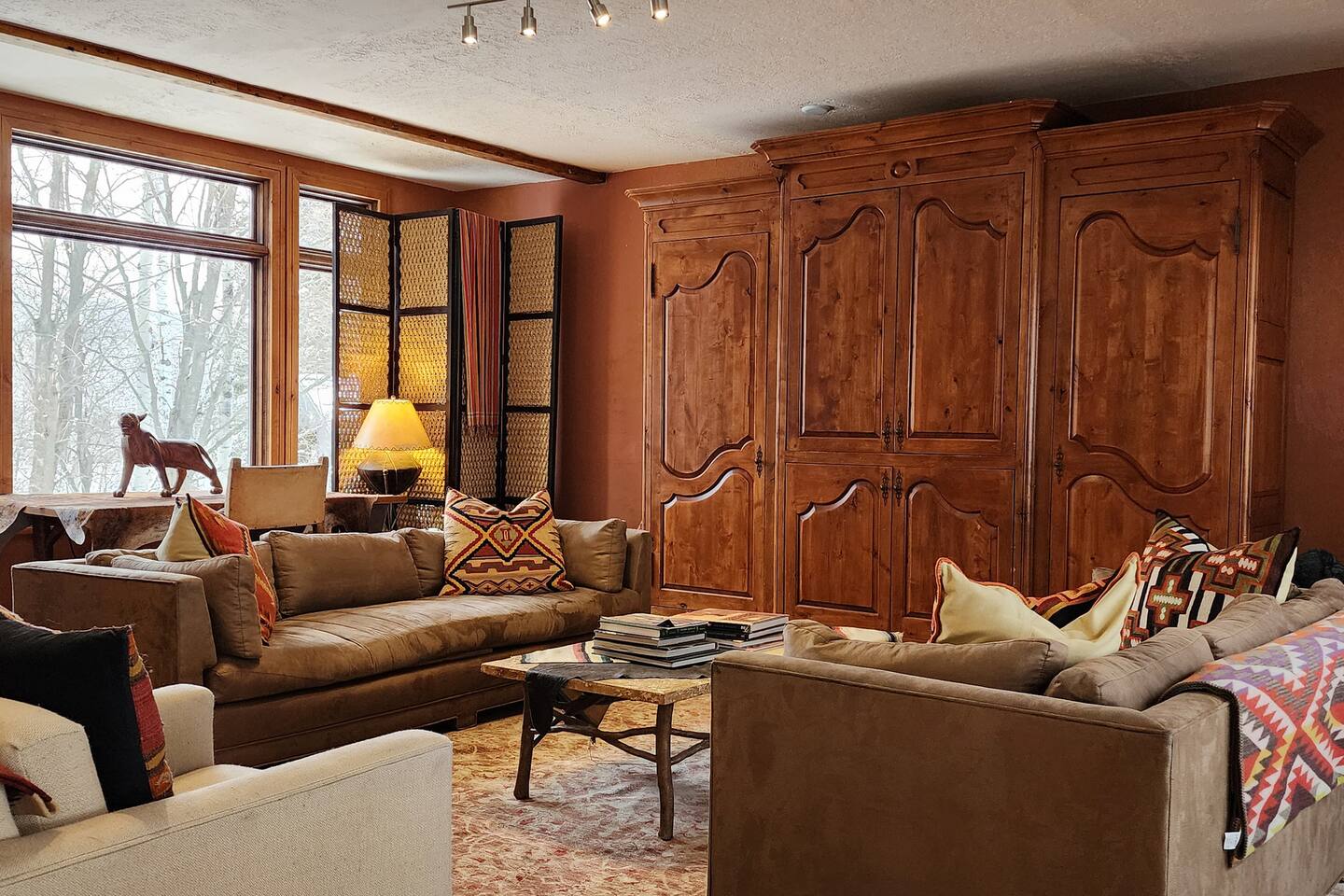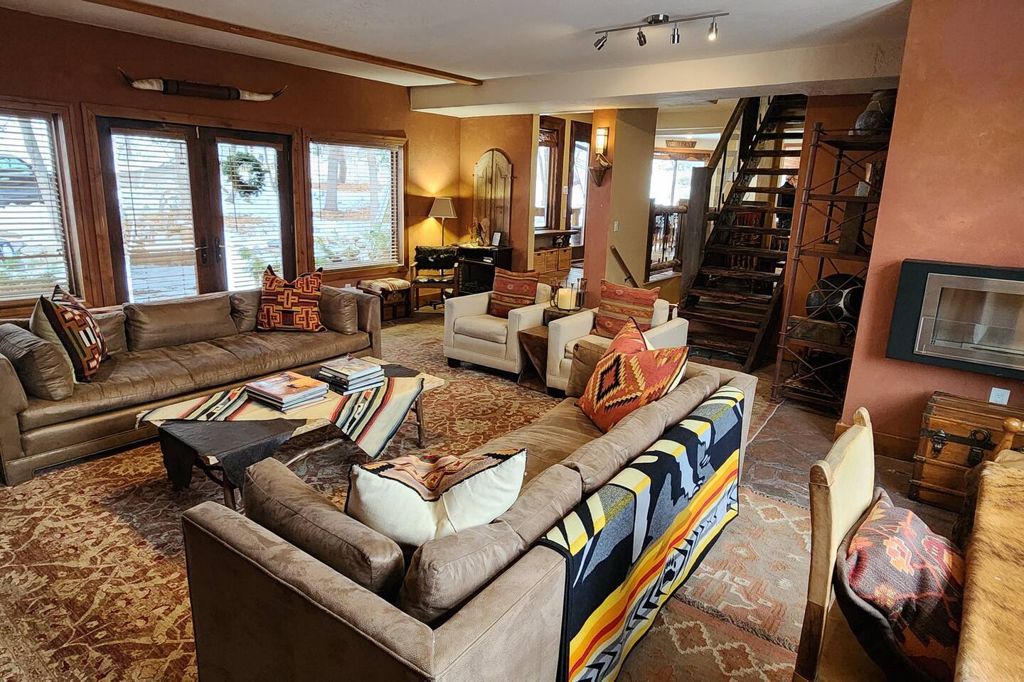 Relax in front of the soothing flames of a real wood fireplace. This beautiful, Sundance mountain contemporary home is the perfect get-away for groups of couples or for family gatherings. Besides the four bedrooms, there are also four separate gathering areas allowing individuals to socialize comfortably. Out 300 Mbs wifi will enable you all to stream your favorite shows on our TV's enabled with ROKU streaming and YouTubeTV cable tv. Something for everyone with the quiet outdoor solitude on the decks and Wii game systems for the youngsters and the puzzles, boardgames and toys for even younger ones. The home is professionally decorated with original art, native American and vintage cowboy decor, and comfortable mountain contemporary furnishings. You will have the home all to yourself.