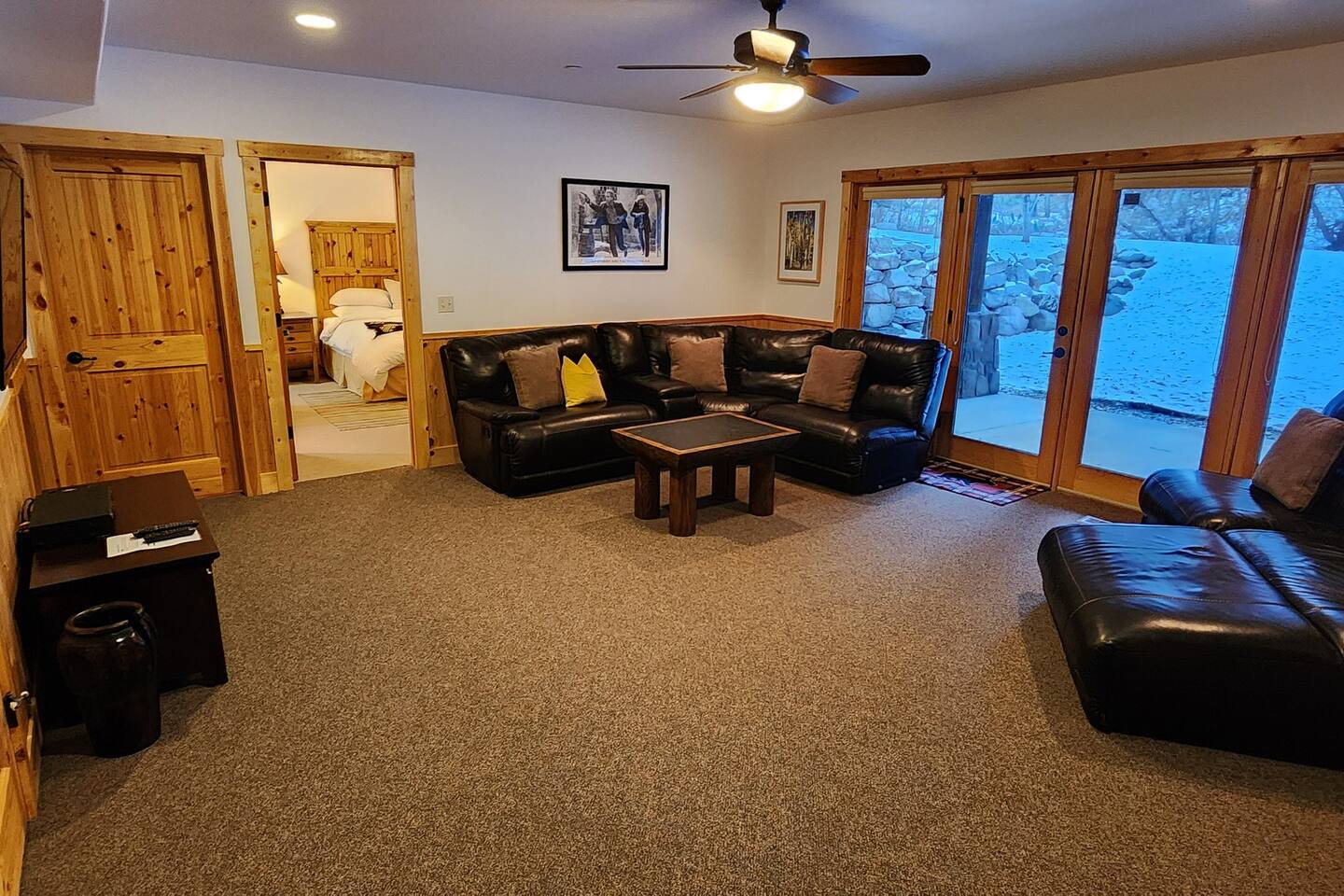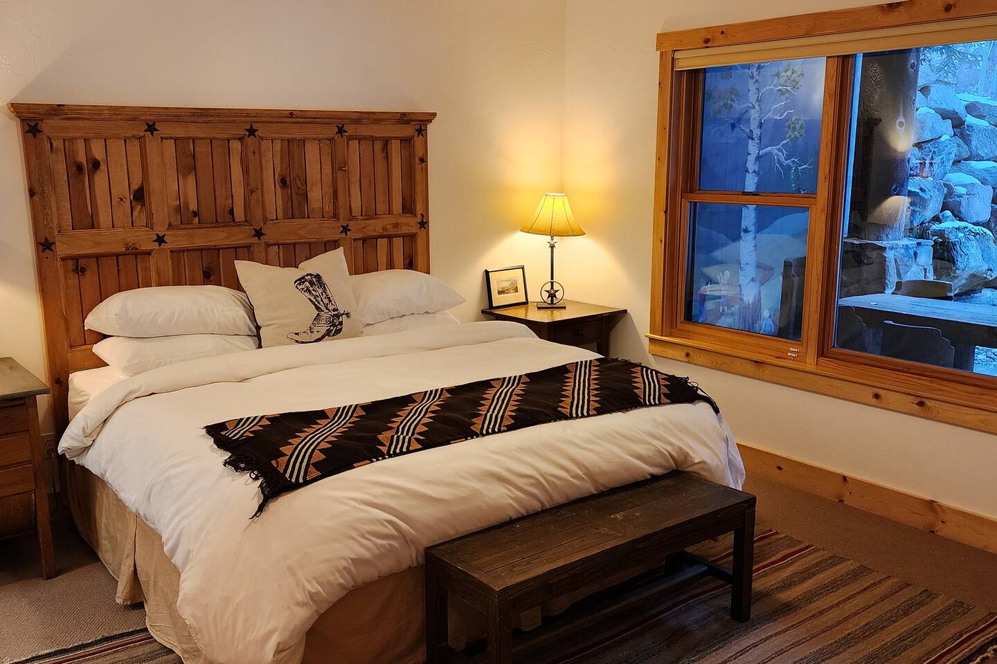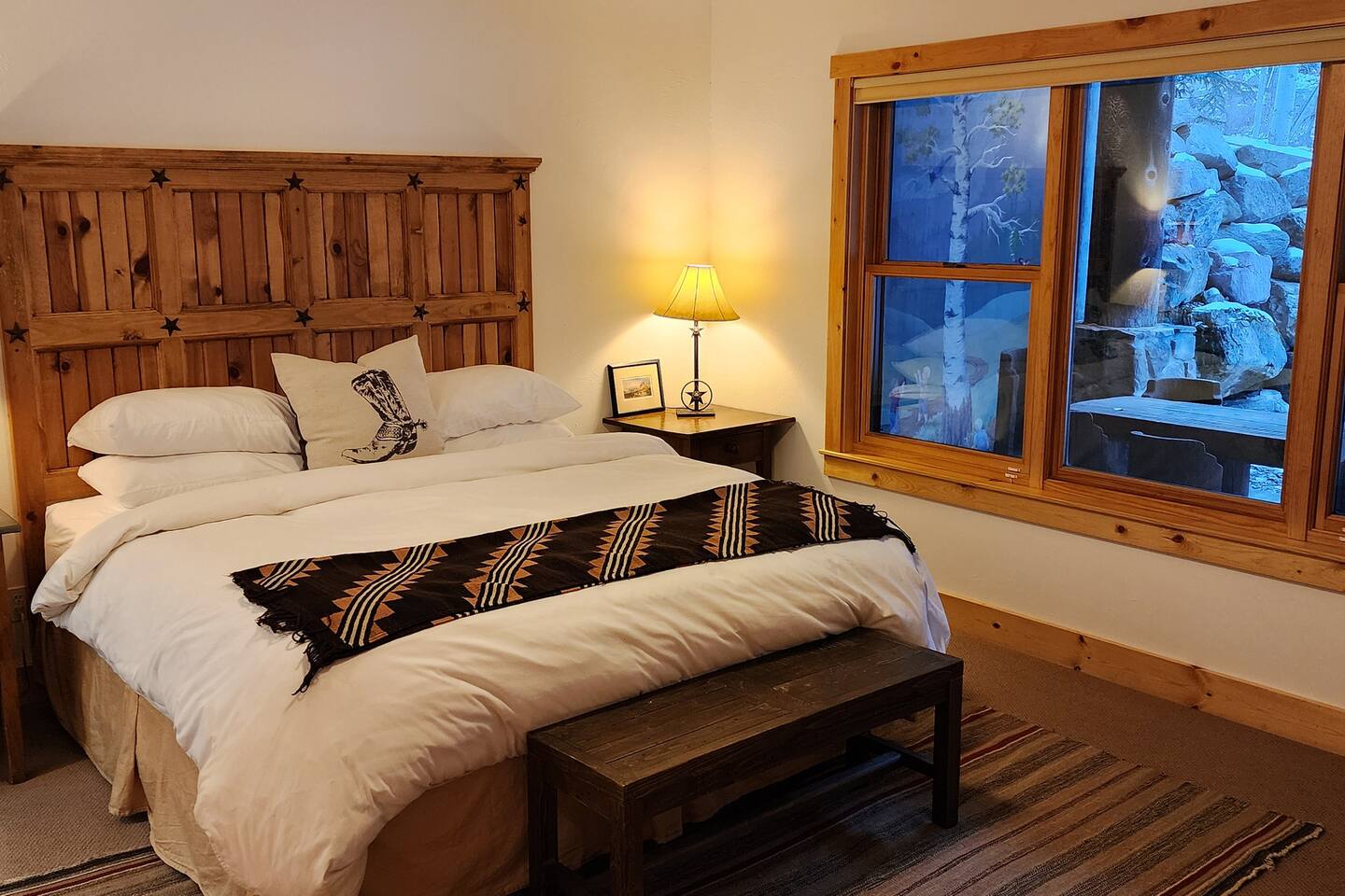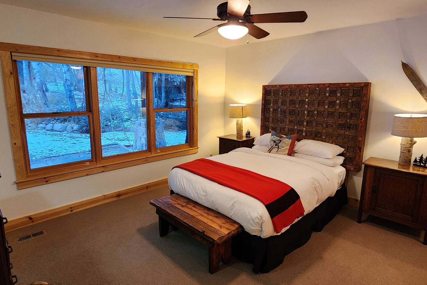 Beautiful neighborhood with many mountain cabins. The roads are narrow and can be slick after a snowfall. It has a two car garage and also two more cars can park in the driveway.