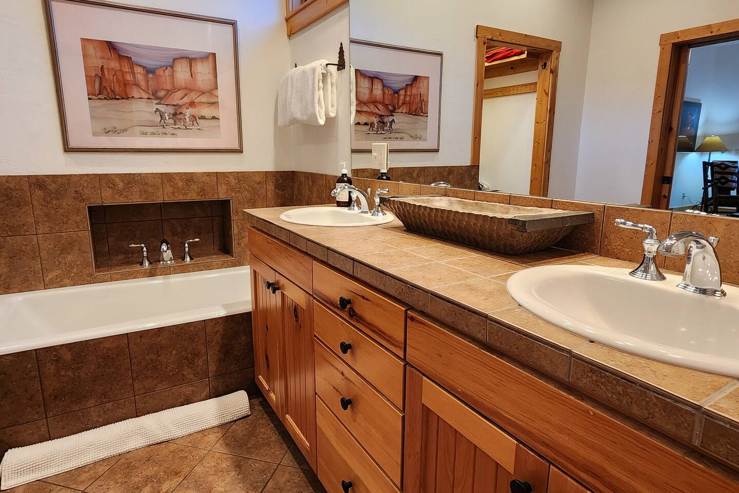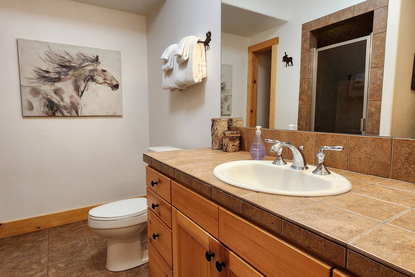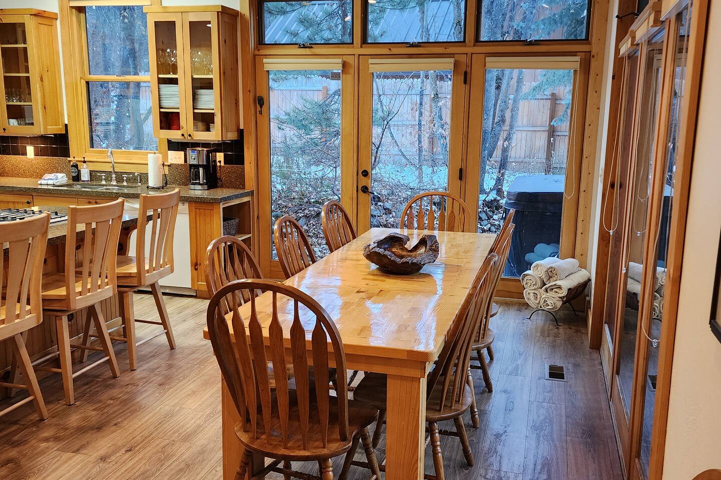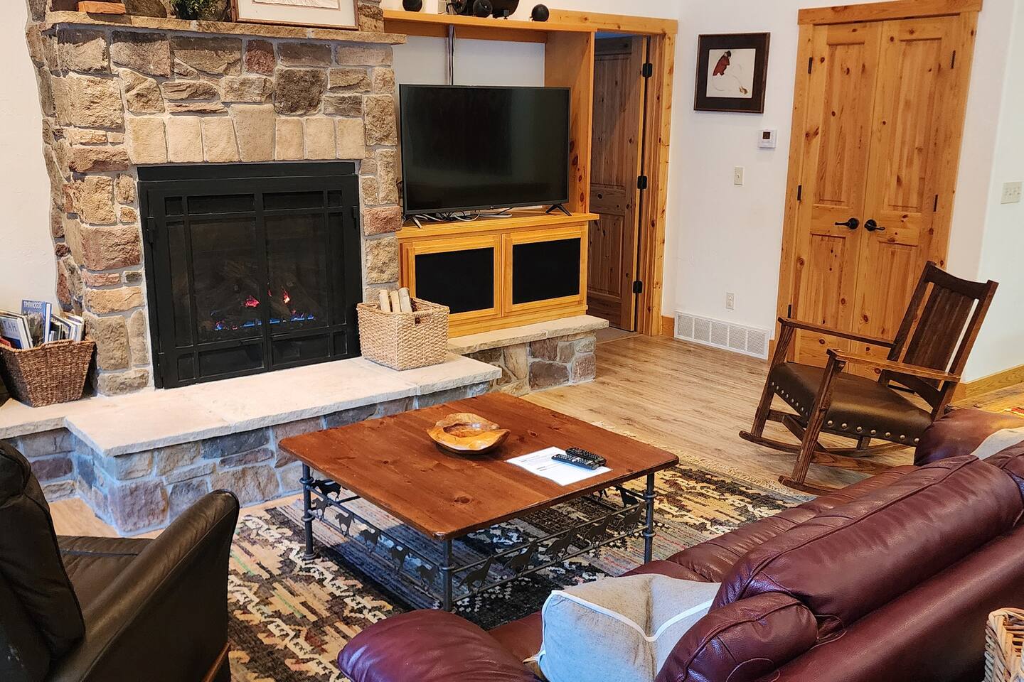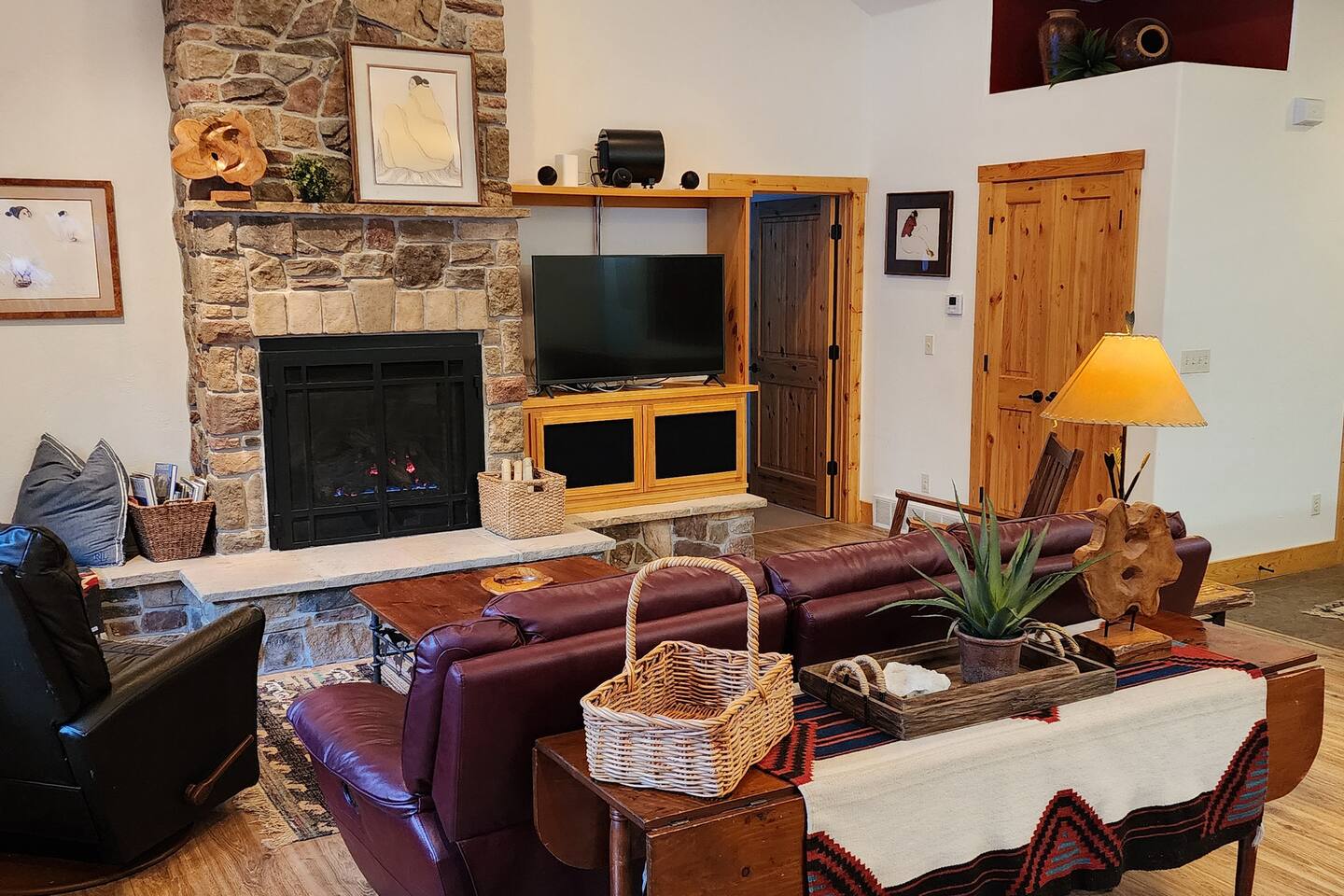Escape to this stunning cabin nestled in the heart of Sundance, offering a perfect blend of luxury and mountain charm. This beautifully appointed 3-bedroom cabin is ideal for a relaxing retreat with family or friends, featuring soaring vaulted ceilings, cozy interiors, and modern amenities throughout. ✓ NO CHORES ✓ Hi-speed Wi-Fi ✓ Up to 8+ guests ✓ Three-bedroom home with 3.5 bathrooms ✓ Gas Fireplace ✓ Dining area with a large table for family games ✓ Fully equipped kitchen